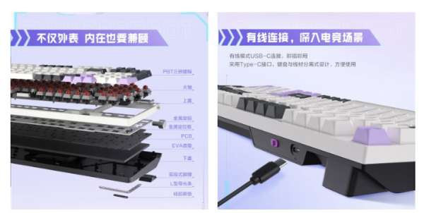 В конструкции ThundeRobot T96 используется комбинация верхней и нижней крышек из ABS и клавишных колпачков PBT, что обеспечивает долговечность и комфорт при наборе текста. Колпачки для ключей PBT изготавливаются двойным или тройным литьем под давлением, что делает их устойчивыми к выцветанию и износу.