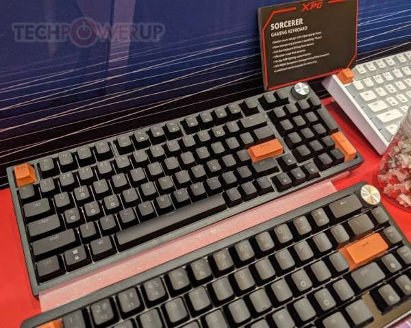 XPG также оставила немного места на стенде для своей новой линейки игровых клавиатур Sorcerer — стандартная модель представляет собой «полноразмерную» плату с форм-фактором 96 %, доступную в черном или белом цвете. Простая эстетика Sorcerer может быть нарушена несколькими (тремя) дополнительными клавишами с акцентом XPG. Серебристый диск управления, похоже, является стандартным креплением. Конструкция с прокладкой и тройным пенополиуретановым слоем обеспечивает изысканный и приятный набор текста. XPG оснастила Sorcerer специальными переключателями Red и системой RGB-подсветки на каждую клавишу (управляется и настраивается с помощью программного обеспечения XPG Prime).