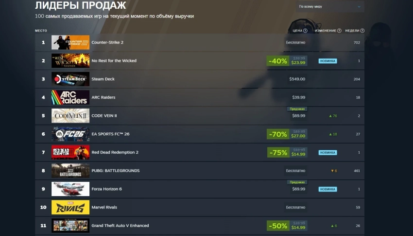 Главная » Статьи » «Обошла ARC Raiders, Forza, GTA, RDR» — в Steam взлетели продажи No Rest for the Wicked
