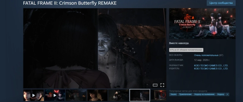 В Steam у Fatal Frame 2: Crimson Butterfly Remake «очень положительный рейтинг»: 81% одобрения на основе 97 обзоров. Пиковый онлайн составил 3 781 игроков одновременно.